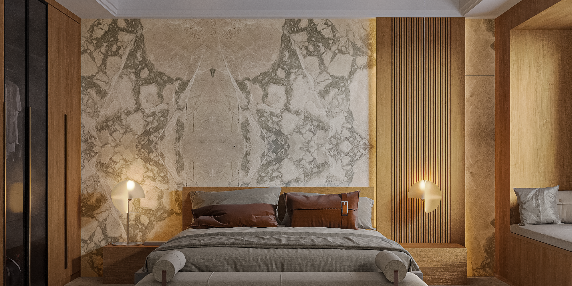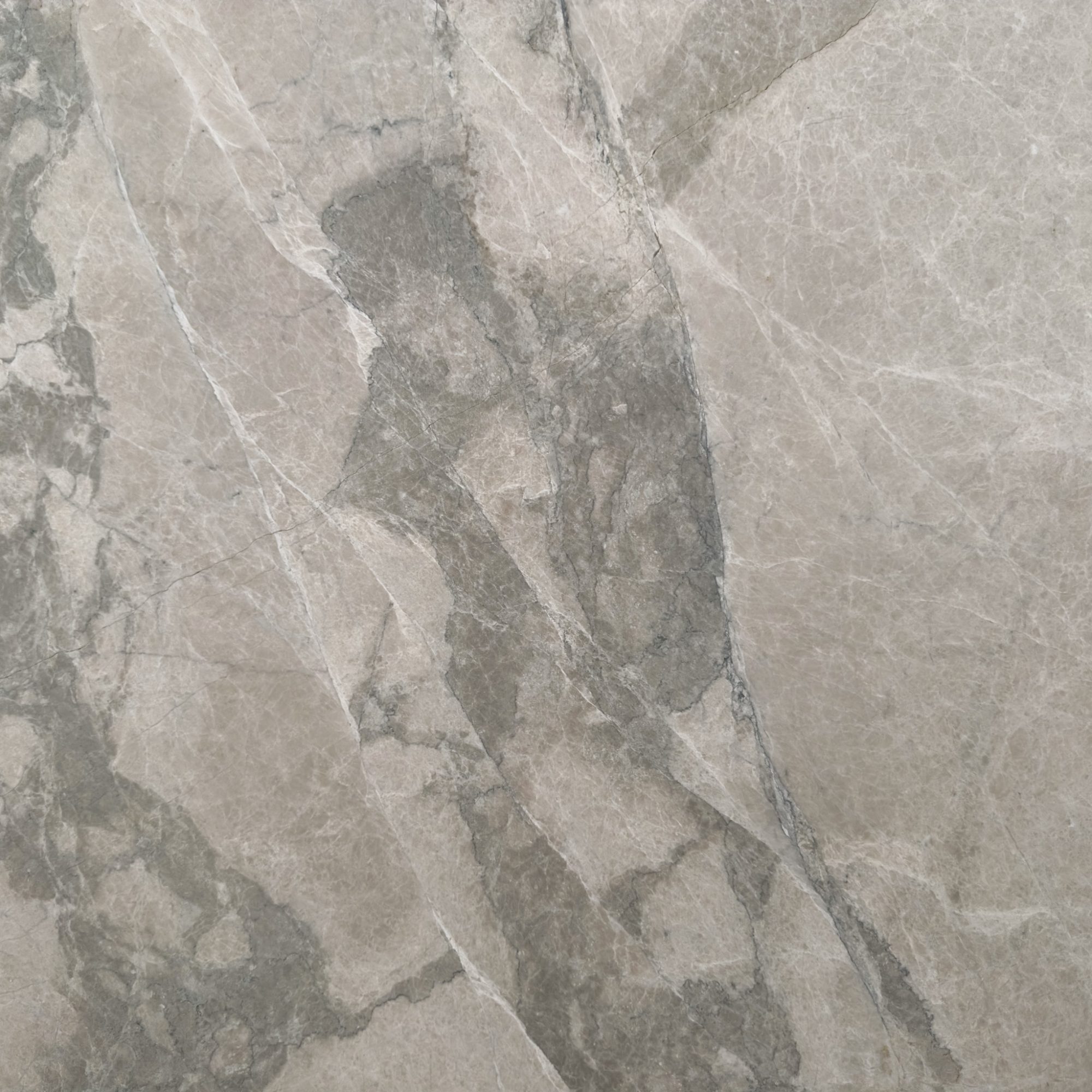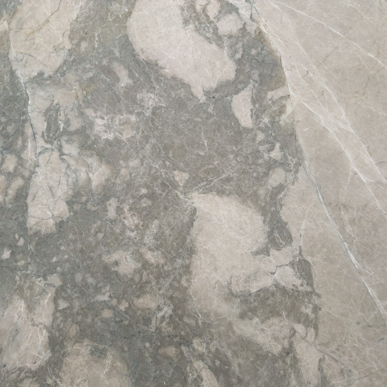 Arabescato Cremo unfolds in a warm beige canvas, laced with gentle waves of moss green.