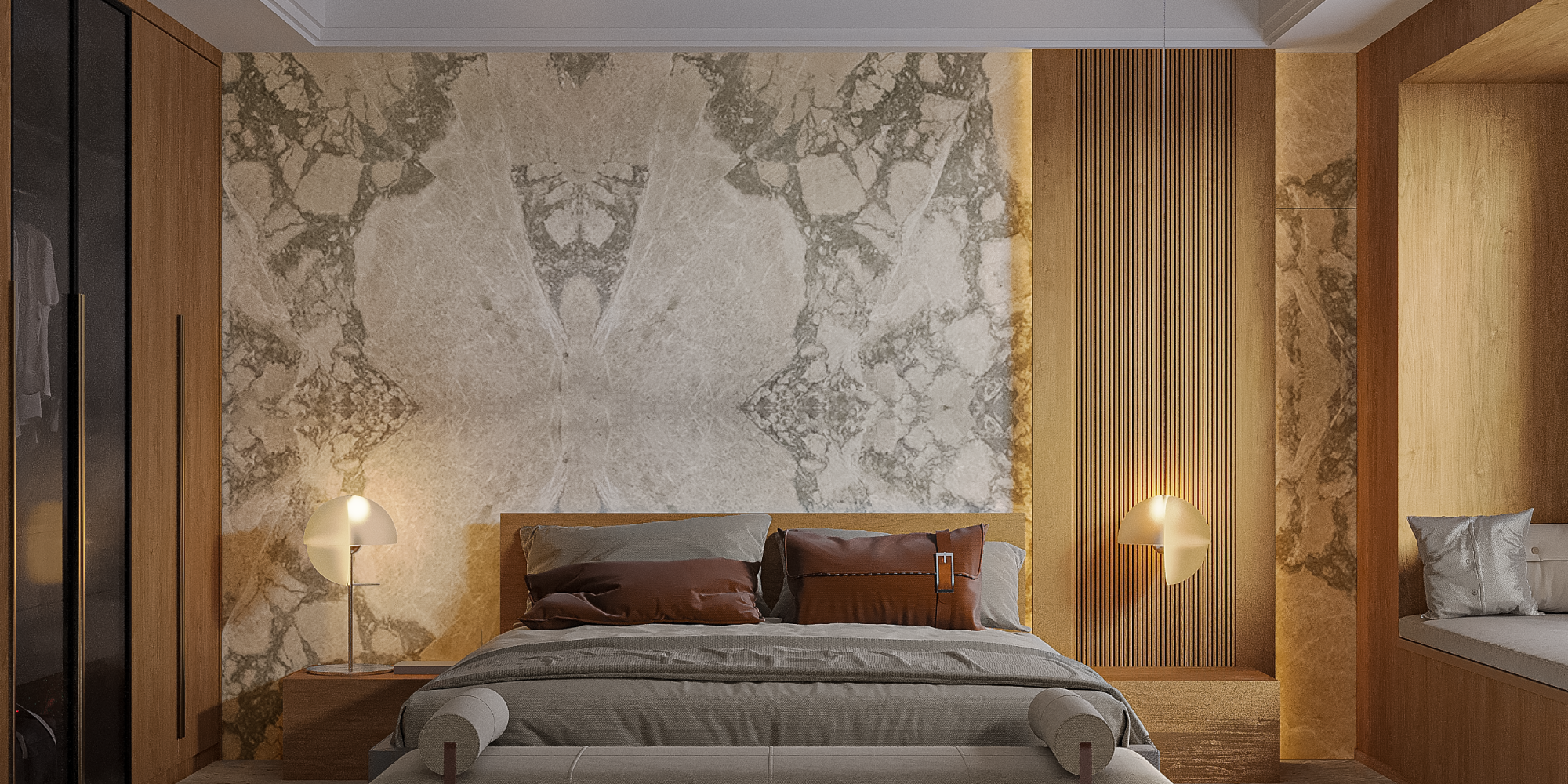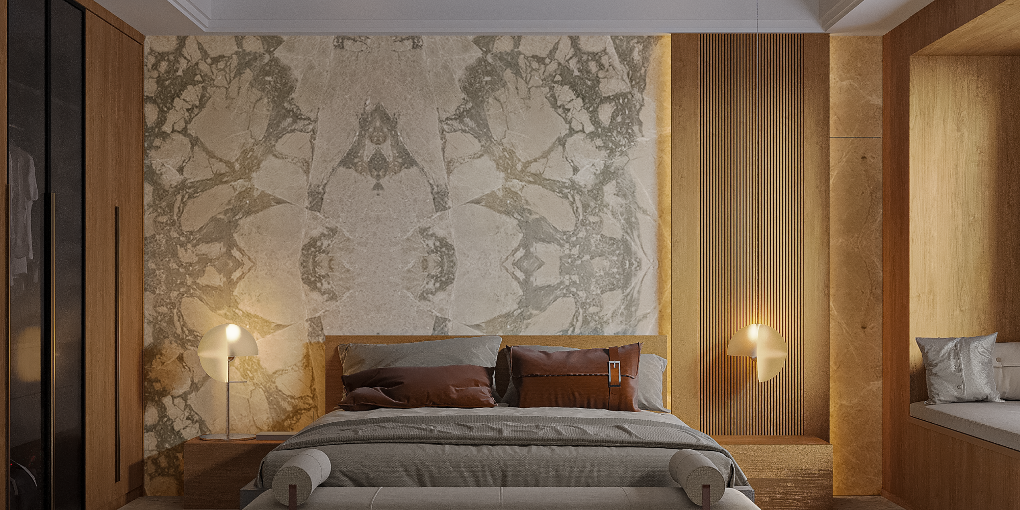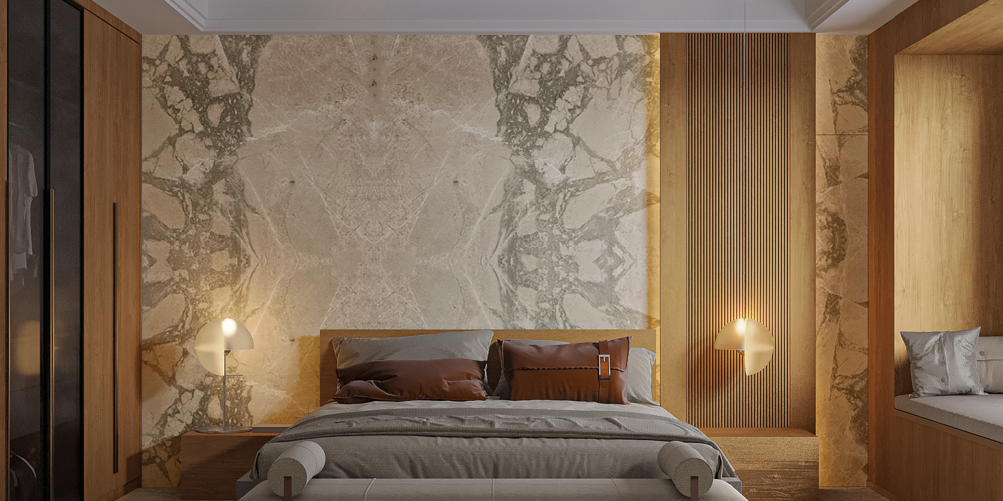 Arabescato Cremo unfolds in a warm beige canvas, laced with gentle waves of moss green.