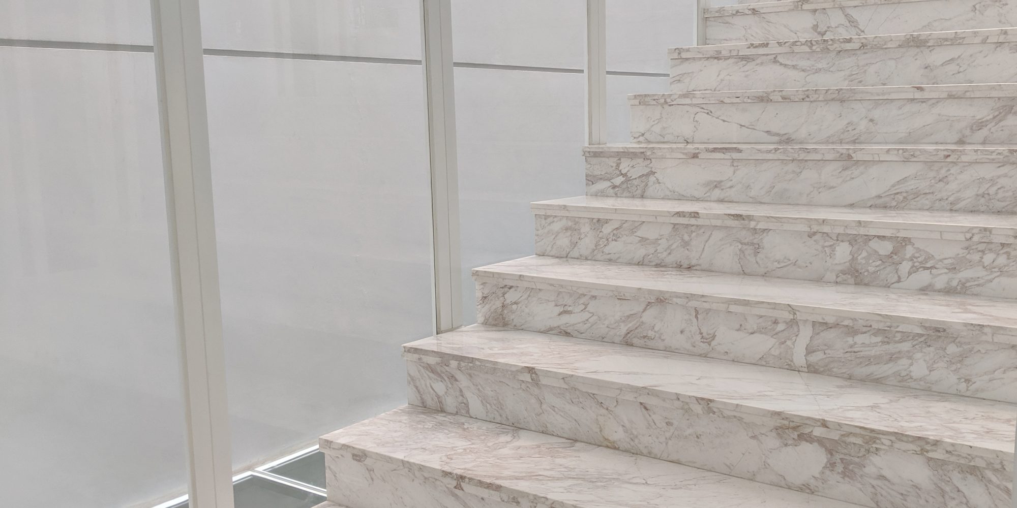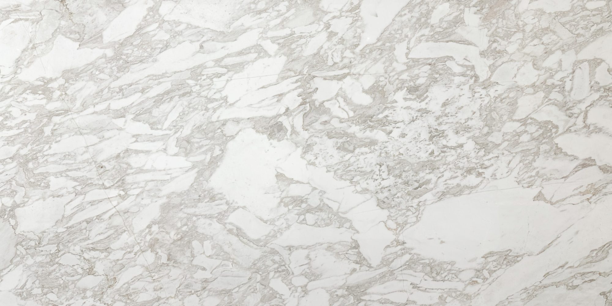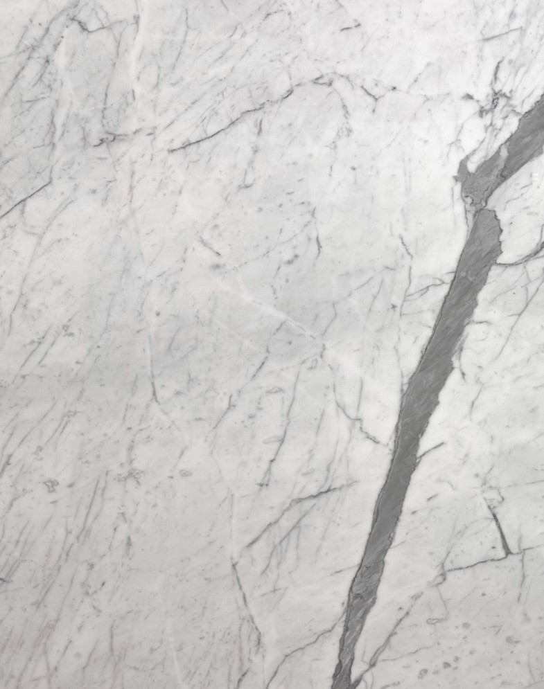 Arabescato captivates with its fine-grained white background, accented by subtle, flower-like greyish-brown veining.