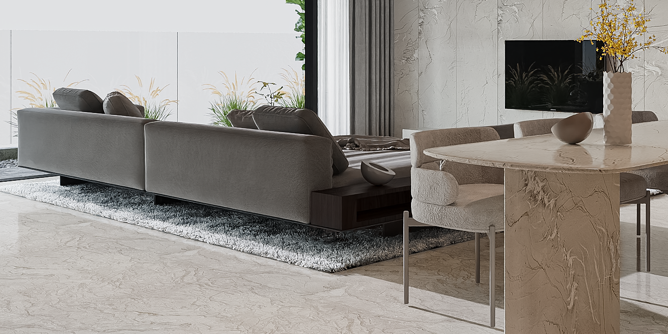 Imagine a gentle ocean breeze captured in stone — Balenio Beige’s creamy surface is alive with subtle waves of pink and red that whisper calm energy and quiet movement.