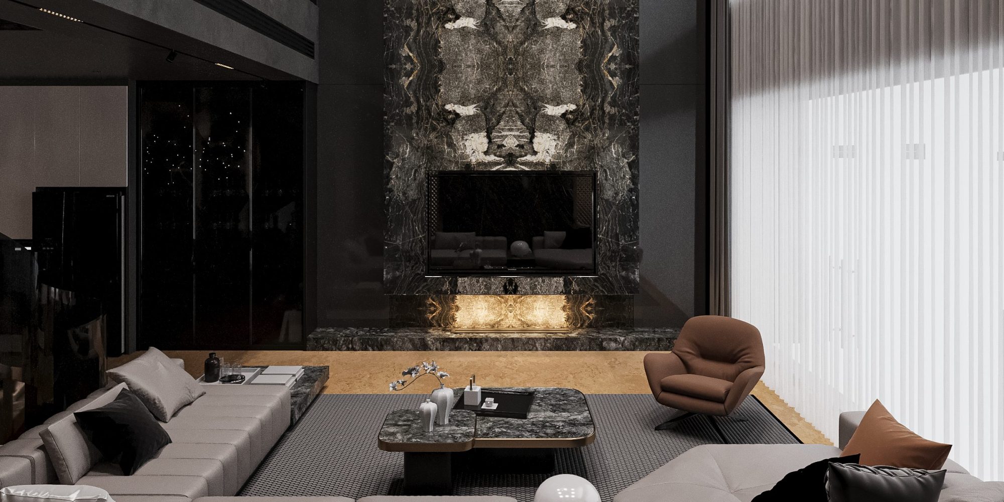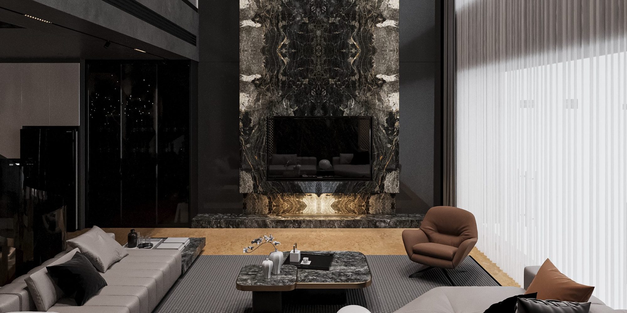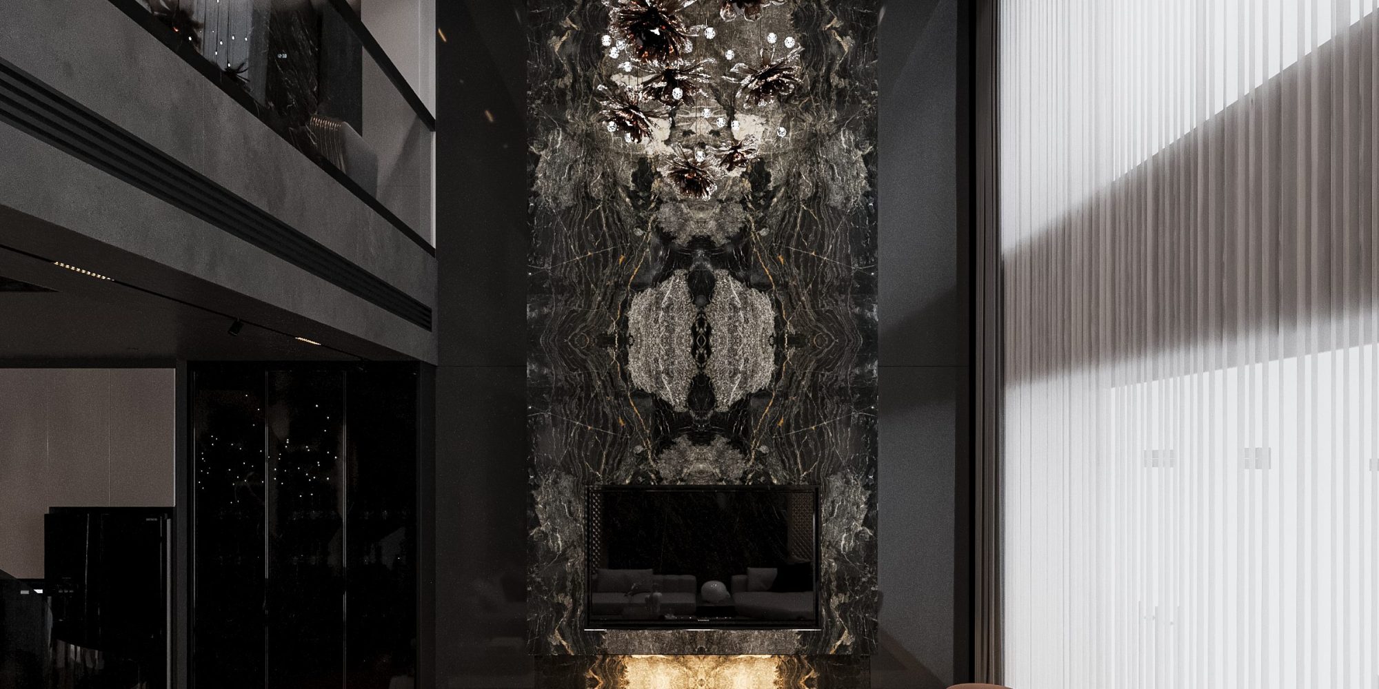 Bentle Black marble features a deep black backdrop, dramatically accented by veining in white, fiery gold, and rich red. Like a painter’s canvas—expressive, vivid, and full of energy—each slab tells a story through its natural composition.
