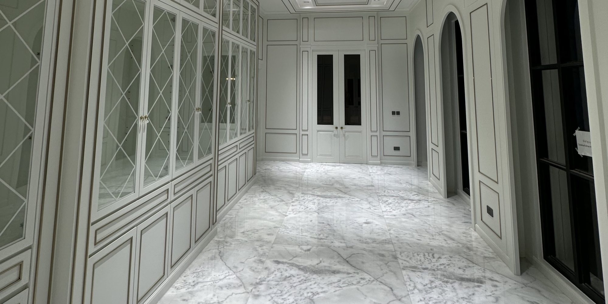 Bianco Venato marble features a white background highlighted by bold grey veining.