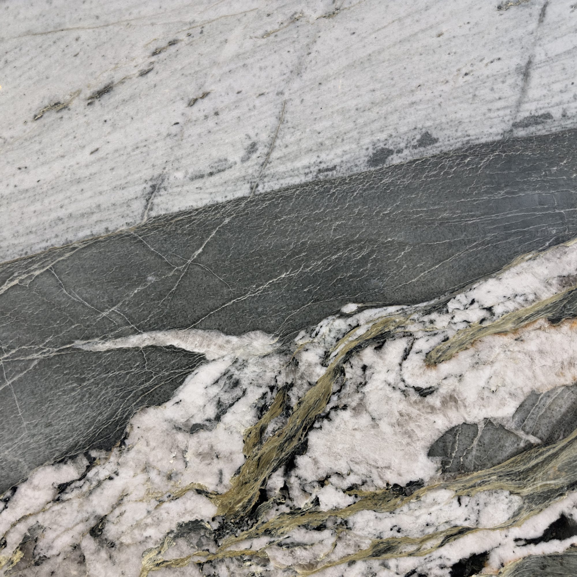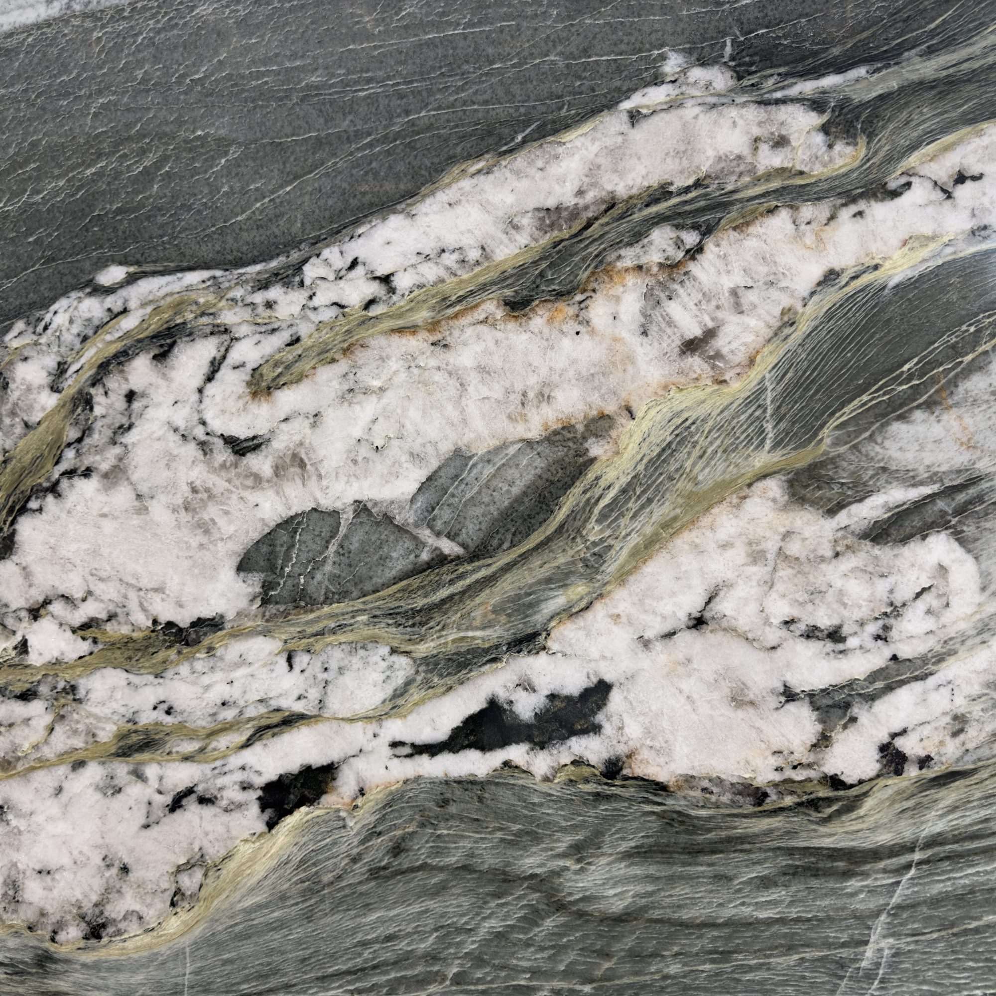 When book-matched, the patterns evoke the grandeur of a majestic mountain blanketed in snow, with white crystals mimicking the peak's frosty tip. Botanic Quartzite is a testament to nature’s artistry, offering unparalleled elegance and sophistication.