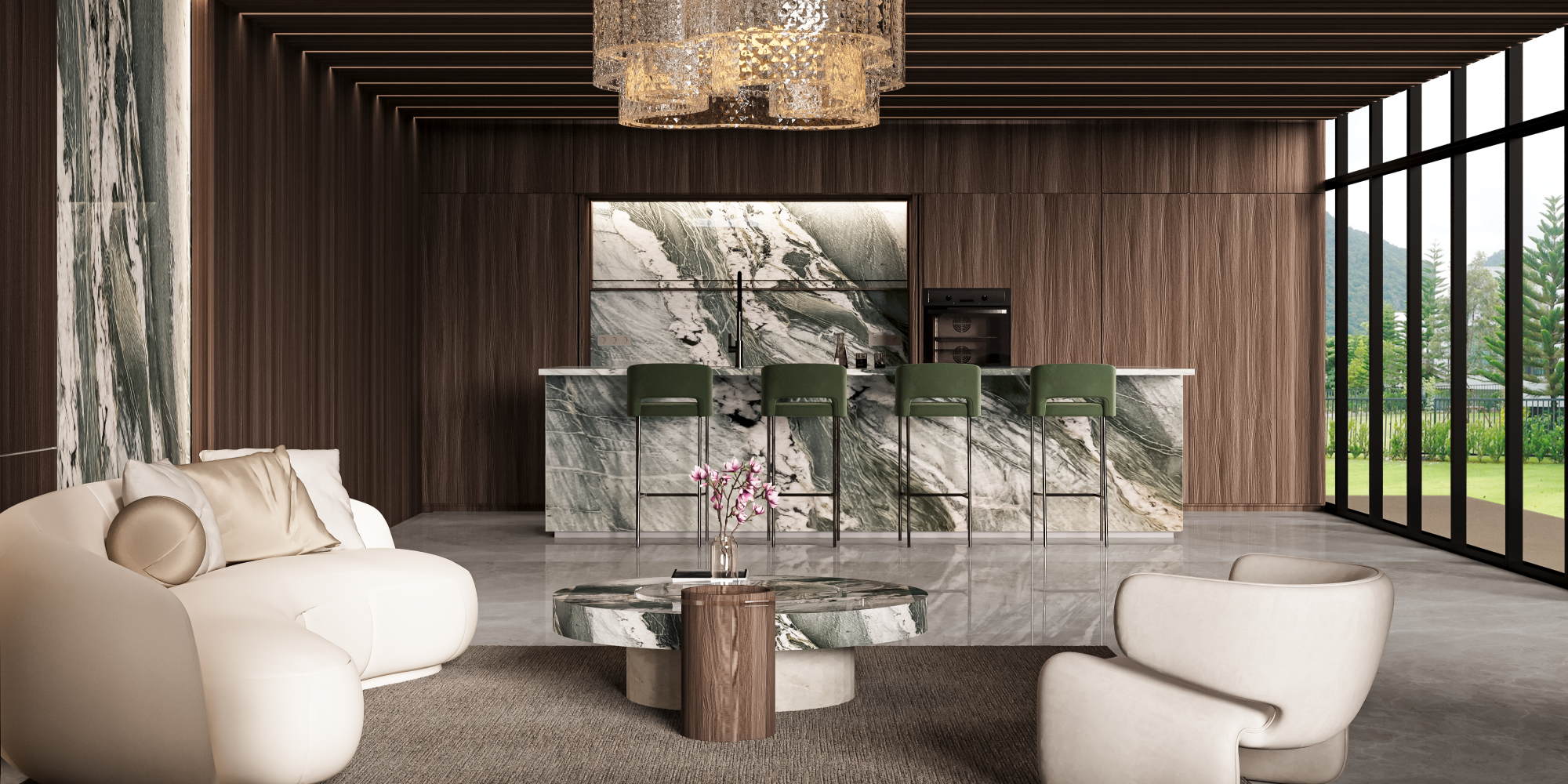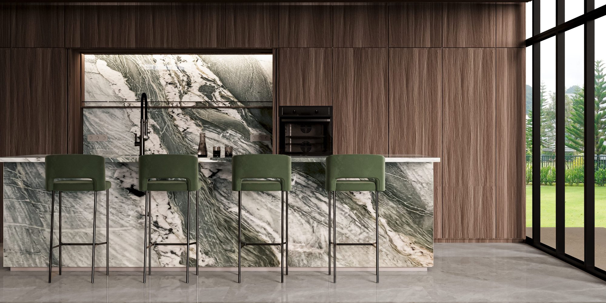 Discover Anmar’s Botanic Quartzite, a stunning natural stone that embodies the serene beauty of lush landscapes. Soft green and deep forest hues are beautifully enhanced by delicate crystals.