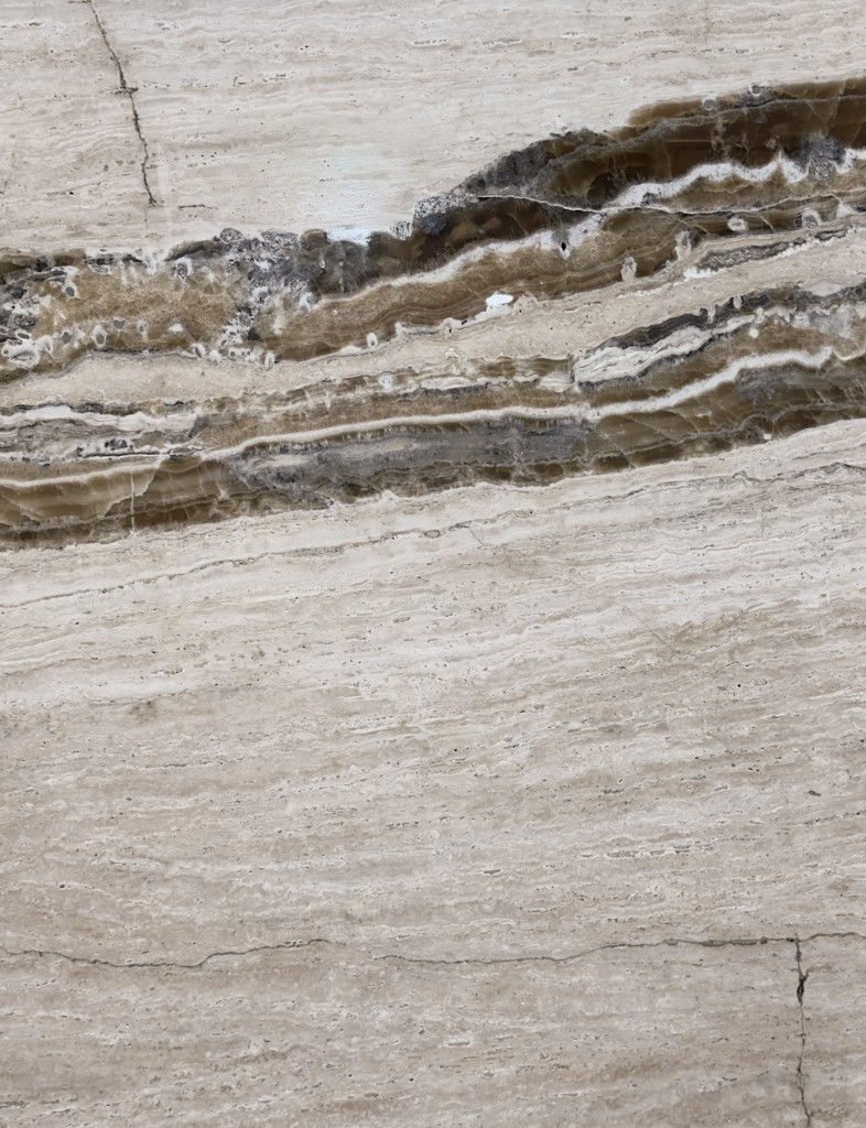 Travertine is a unique, sedimentary stone formed over centuries from mineral-rich waters in caves and hot springs. Known for its distinctive texture, travertine features natural holes and pits that add character and charm. These features can be left unfilled for a raw, rustic aesthetic or filled for a smoother, more refined finish.