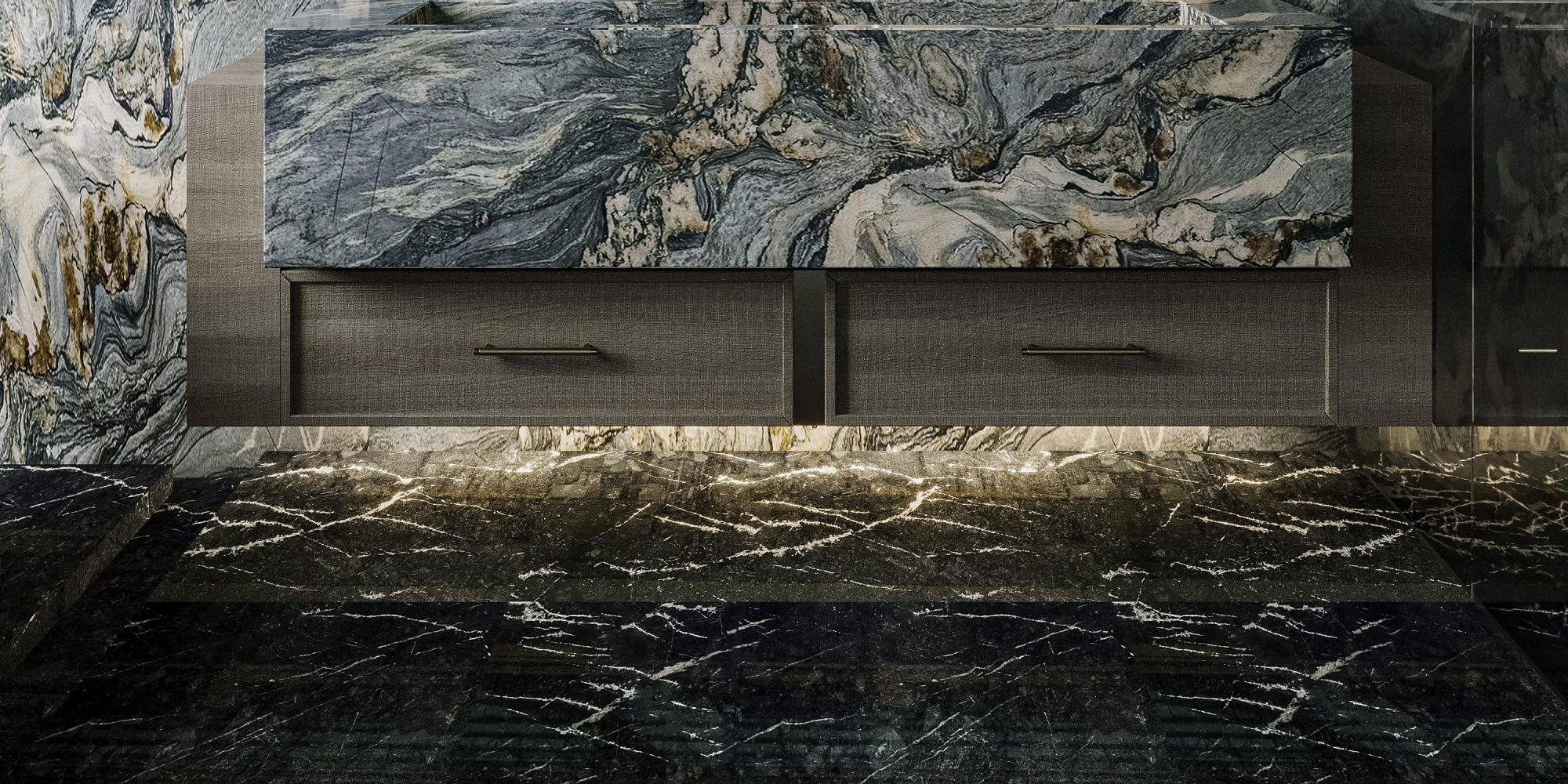 Duna Black features a deep black backdrop, with some showcasing bold white veins, while others offer a more subtle, vein-free appearance.