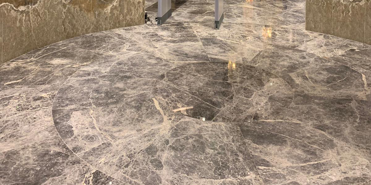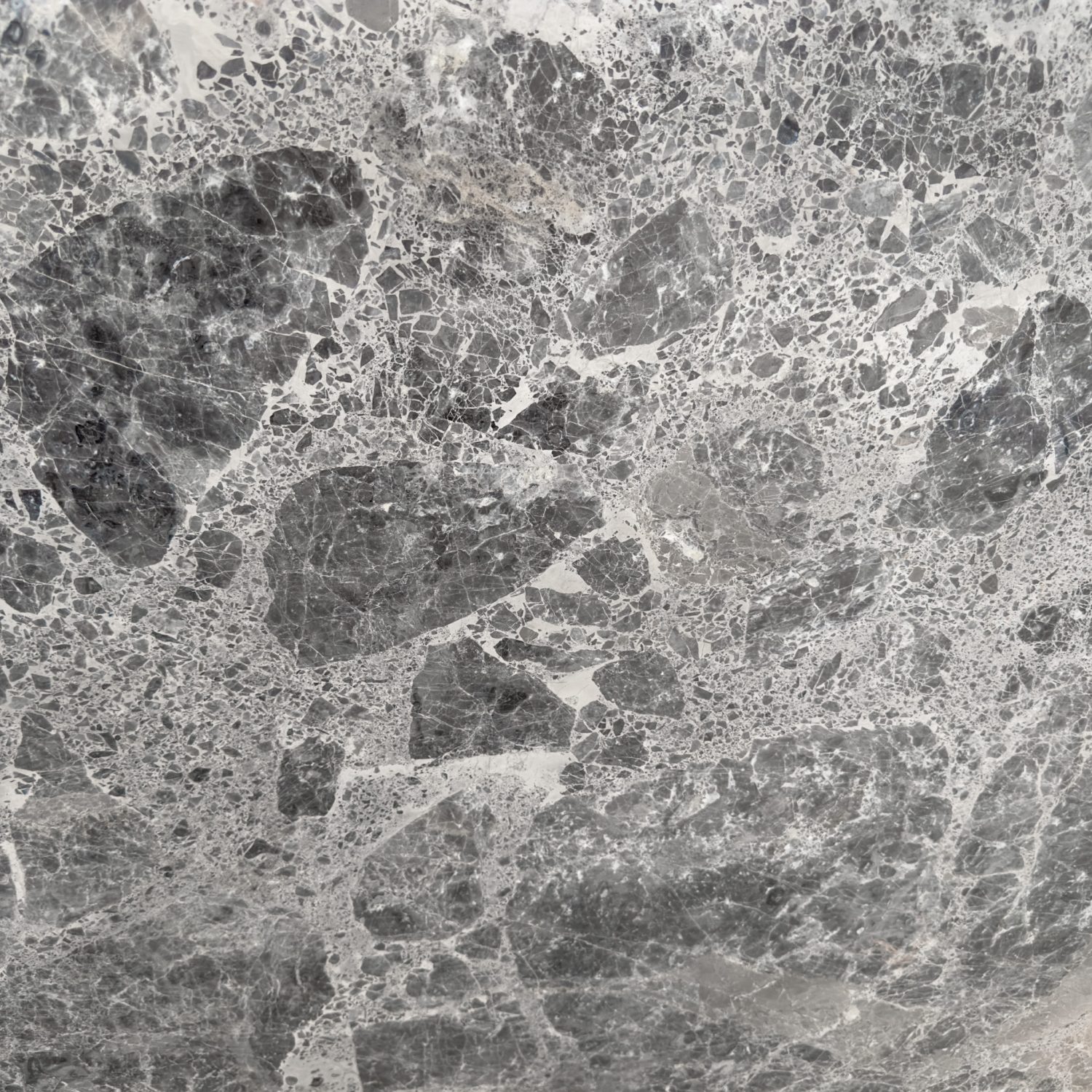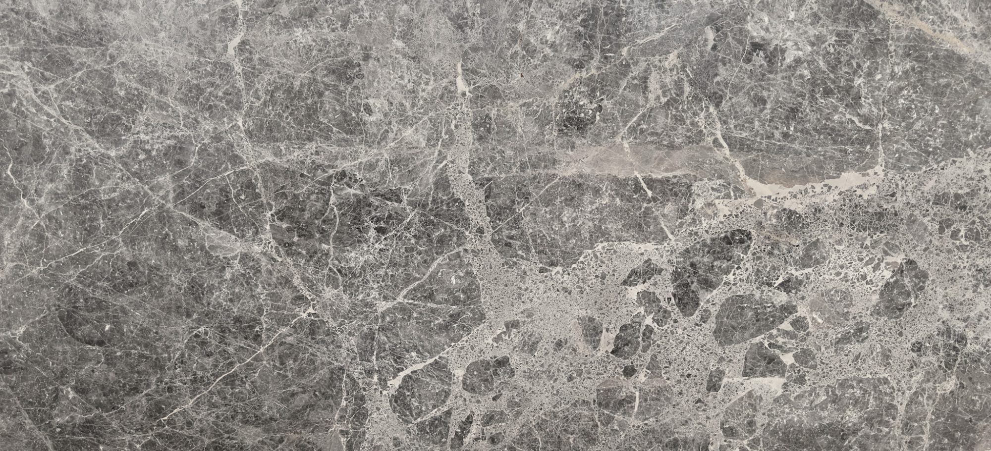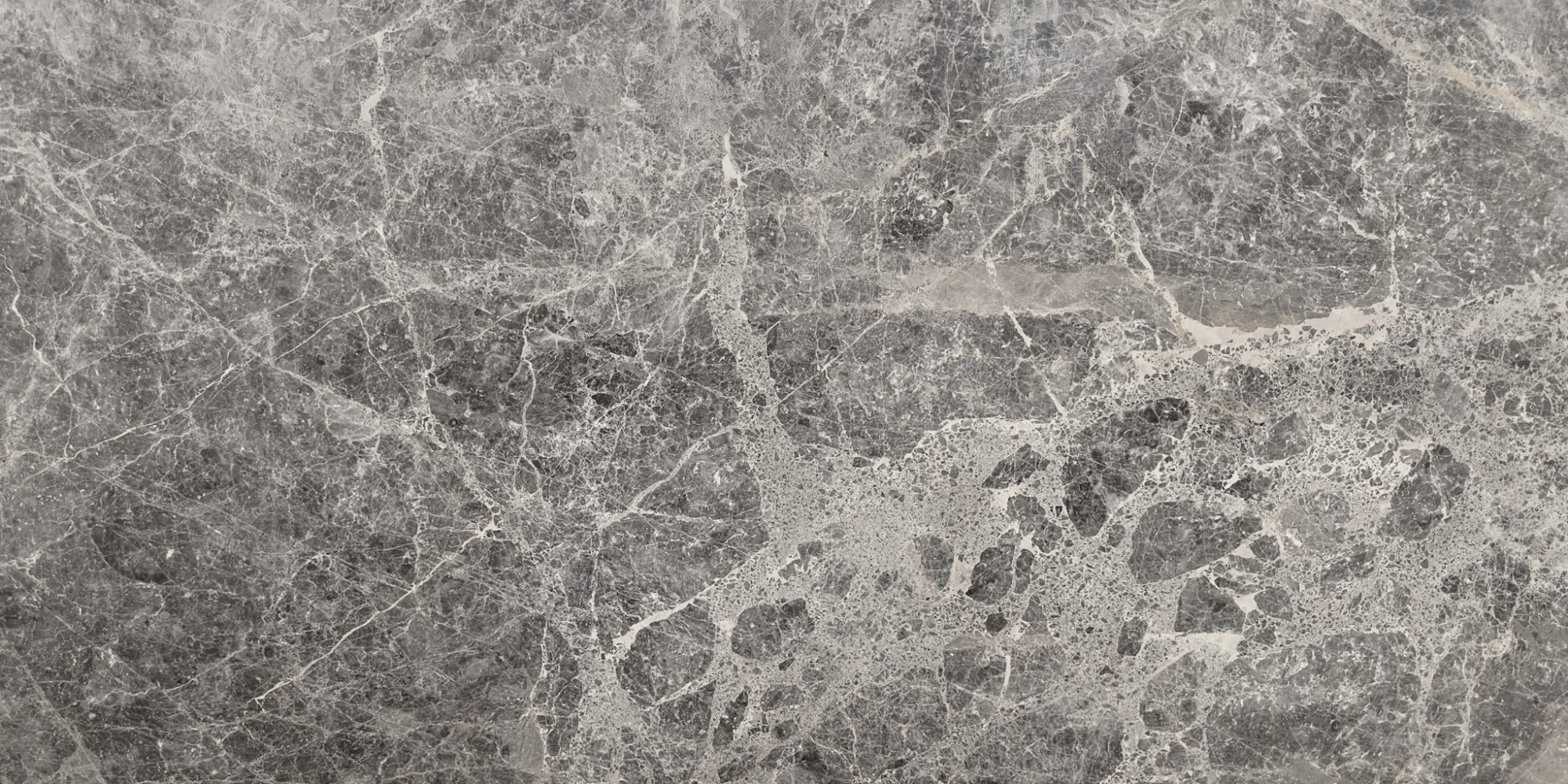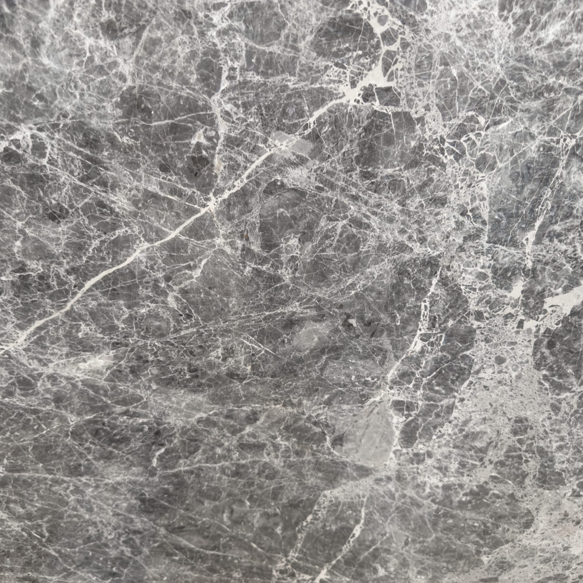 Grey Emprador features a grey base, intricately adorned with spider-like veining in light grey, creating a captivating and dynamic visual pattern.