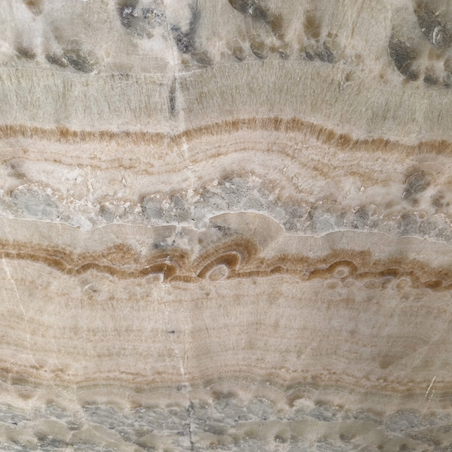 Step into the warm, opulent world of Anmar’s Honey Onyx. This captivating stone unveils layers of soft honey, subtle green, gentle greys, and warm orange hues, creating a harmonious, multi-dimensional effect. Its natural translucency allows light to dance through its surface, highlighting its rich, layered texture.