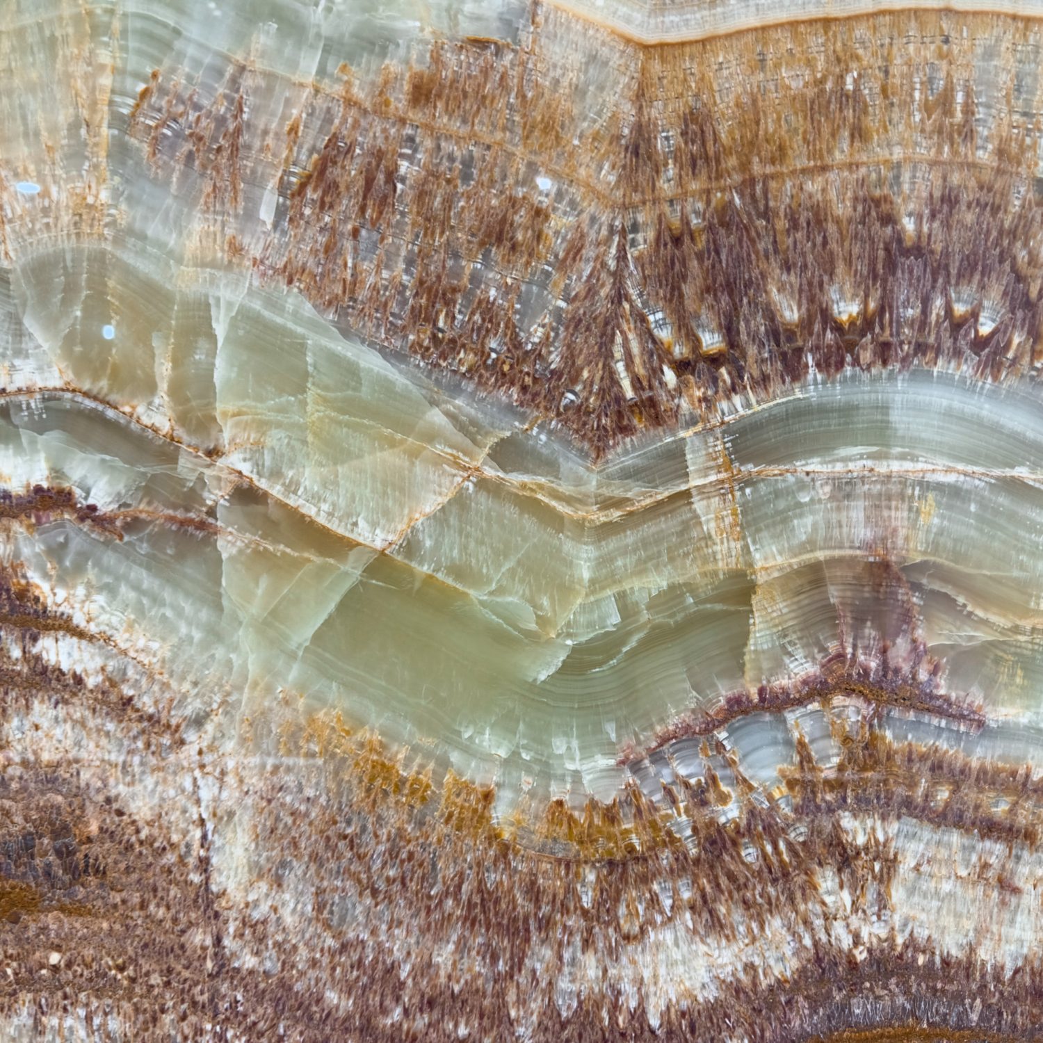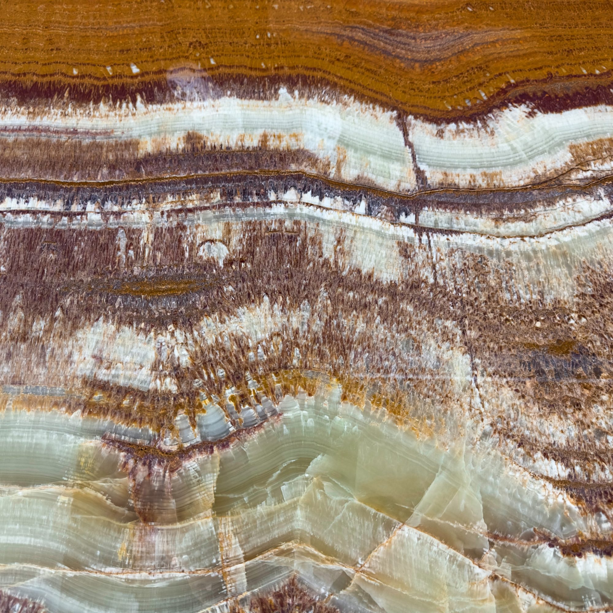 Step into a world of breathtaking color and natural elegance with Anmar’s Rainbow Onyx. This exquisite stone is a harmonious blend of jade green, vibrant orange, and soft burgundy – each hue carefully crafted by nature itself.