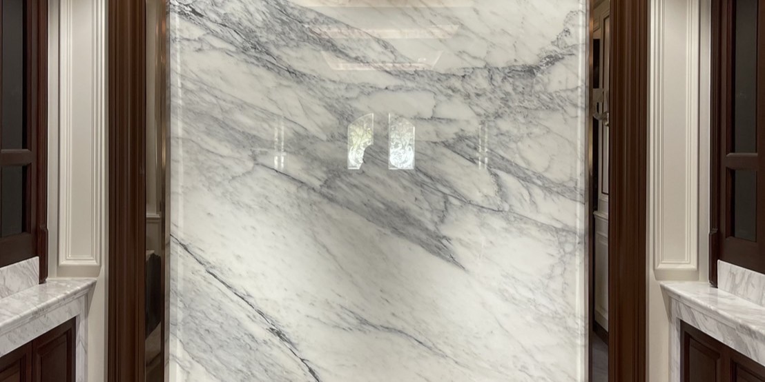 Picture a canvas brushed with nature’s finest artistry—Royale Calacatta reveals a milky white backdrop flowing beneath graceful grey veining, occasionally kissed with hints of gold.