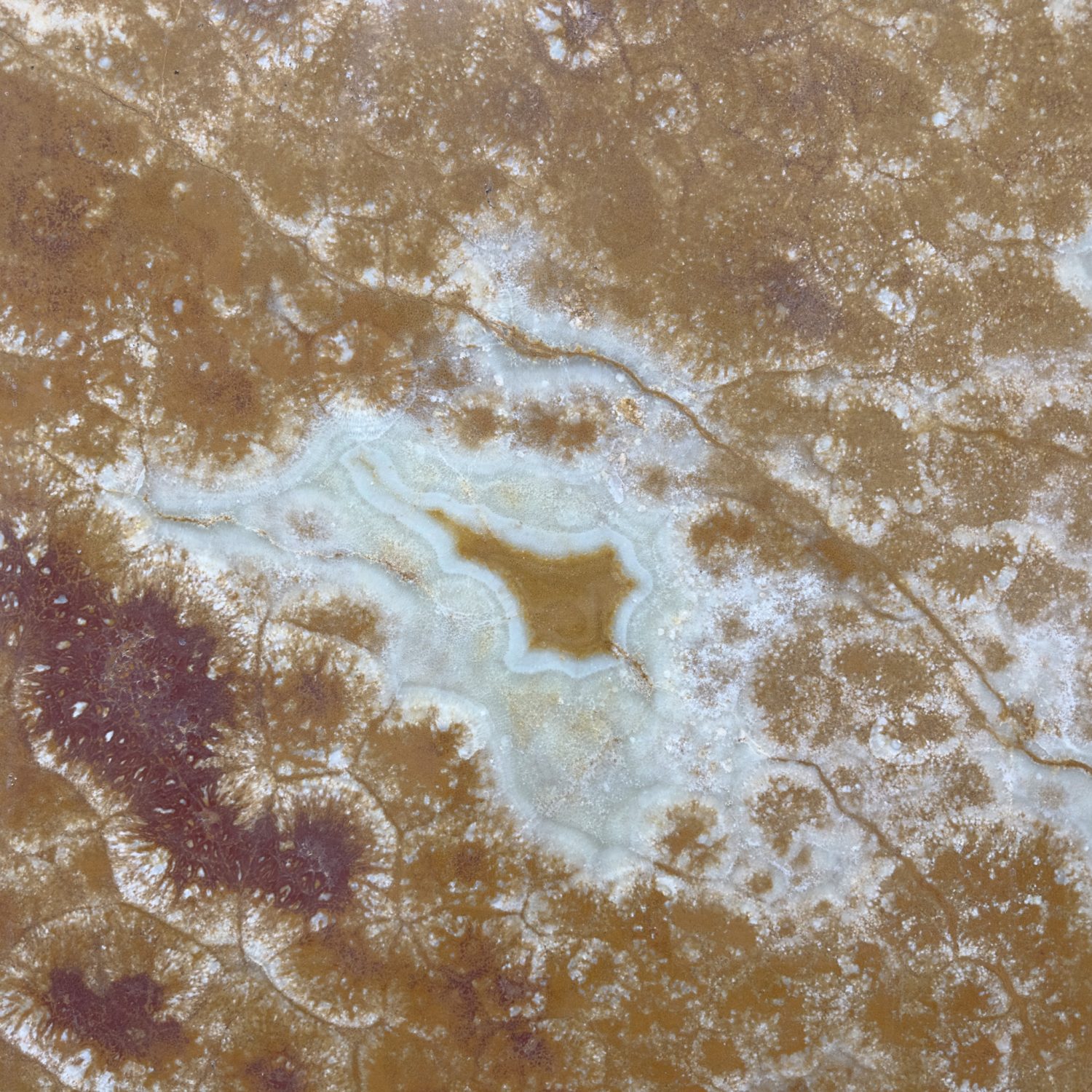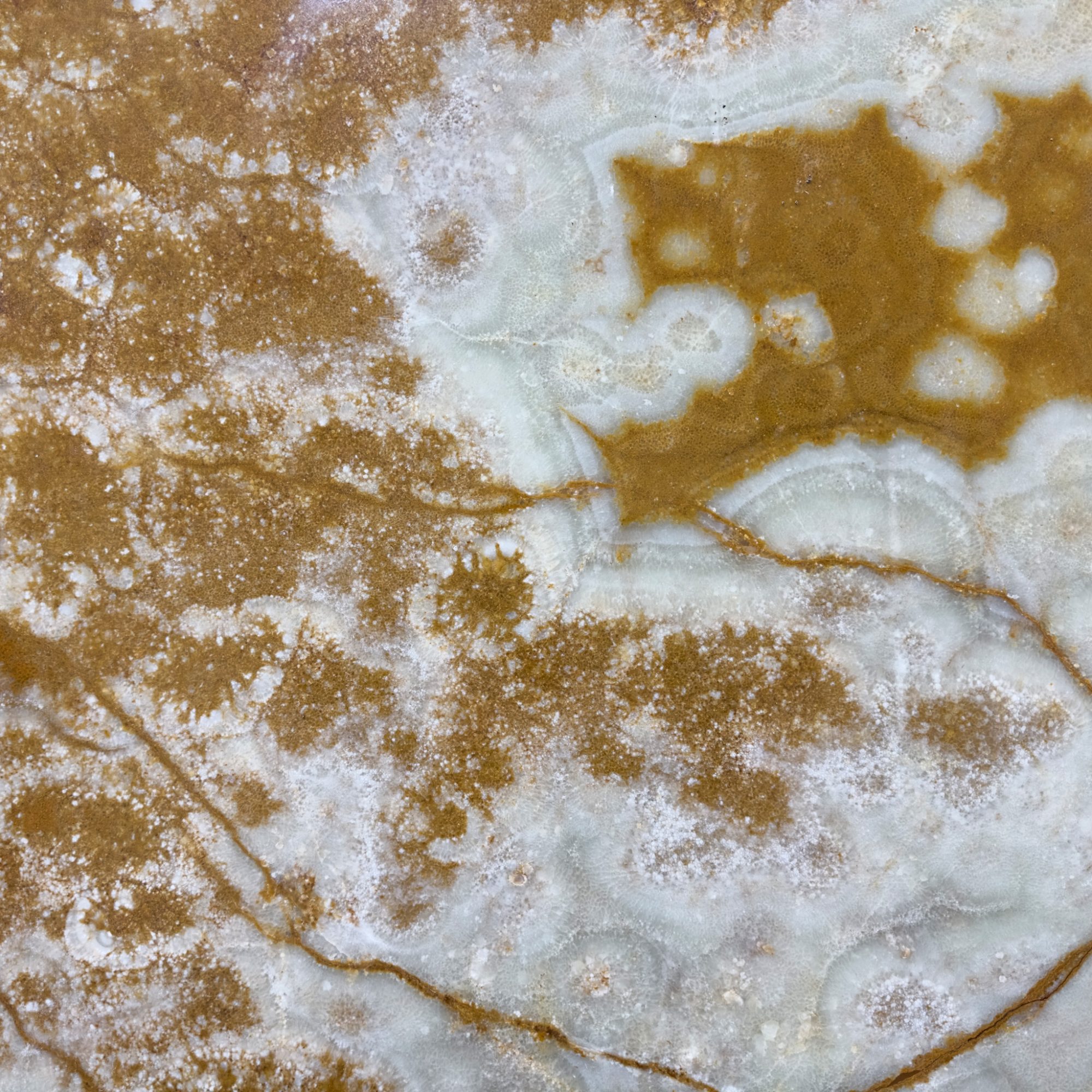 Valencia Onyx showcases a vibrant orange base with soft yellow and jade green accents.