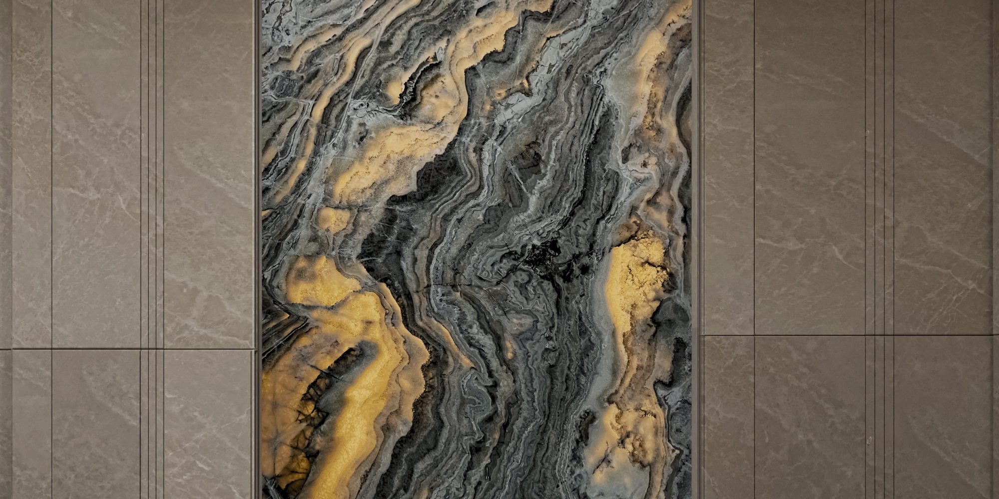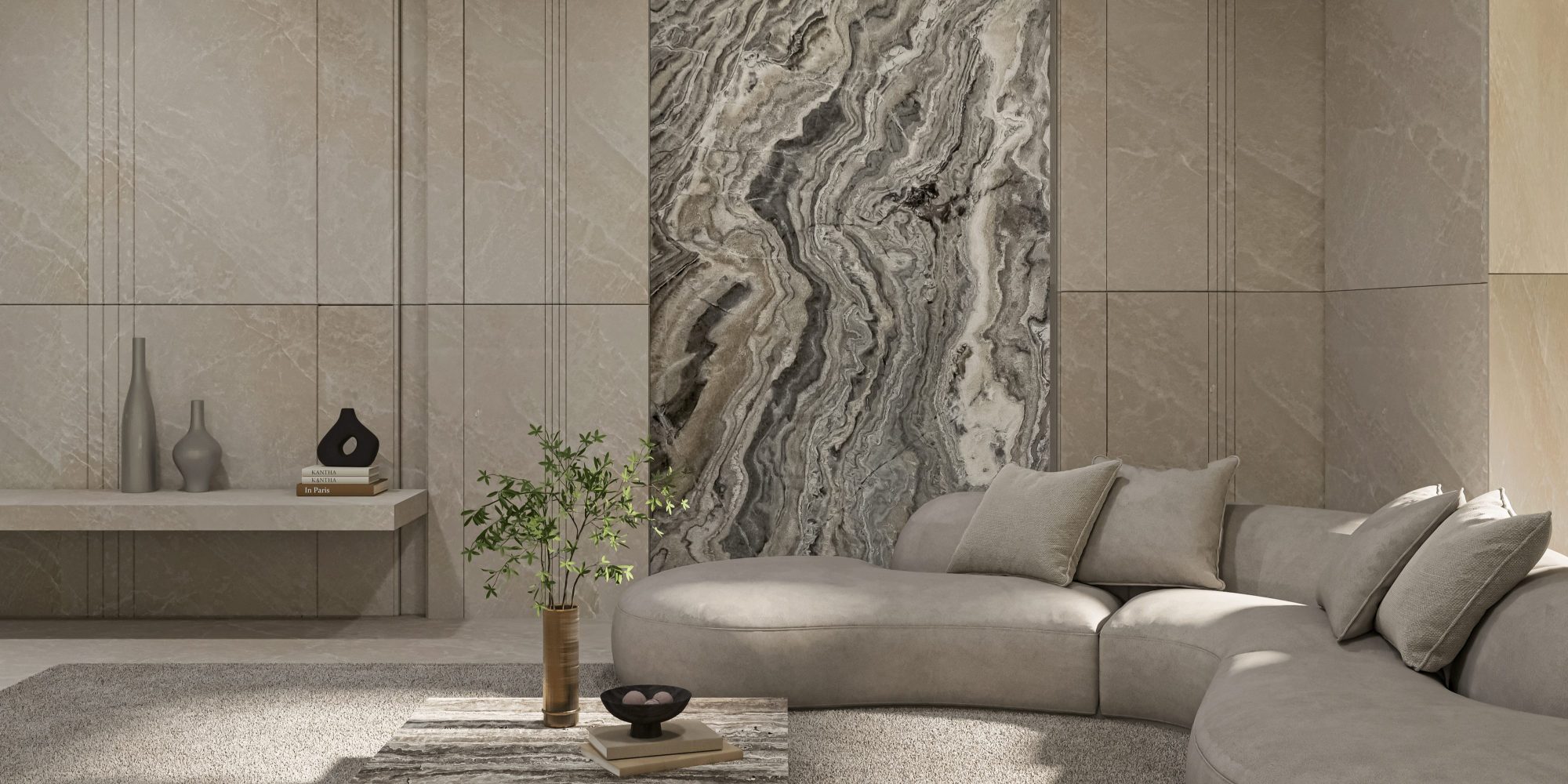 Meet Anmar’s Venda Onyx, a striking stone that showcases a captivating interplay of grey tones, softly accented by pale ivory and subtle hints of yellow gold. With its beautiful wave-like pattern, Venda Onyx creates dynamic movement and depth within any space.