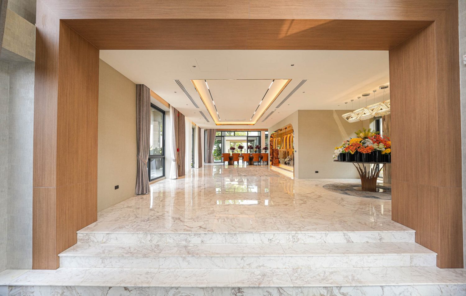 Corridor Flooring in Crema Beige Marble