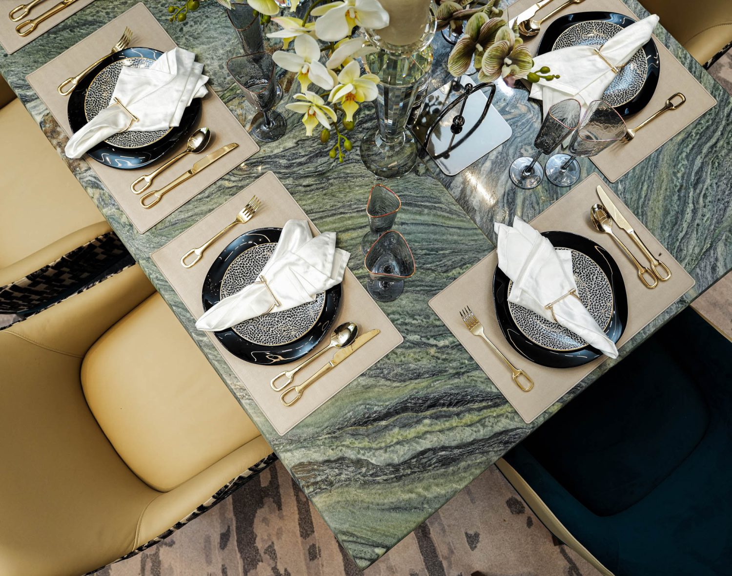 To achieve a cohesive yet dynamic interior, neutral-toned flooring was paired with bold, colorful feature walls for visual contrast. Each room features a unique natural stone, adding depth, character, and individuality. The result is a personalized living experience where every space feels distinct and meaningful.