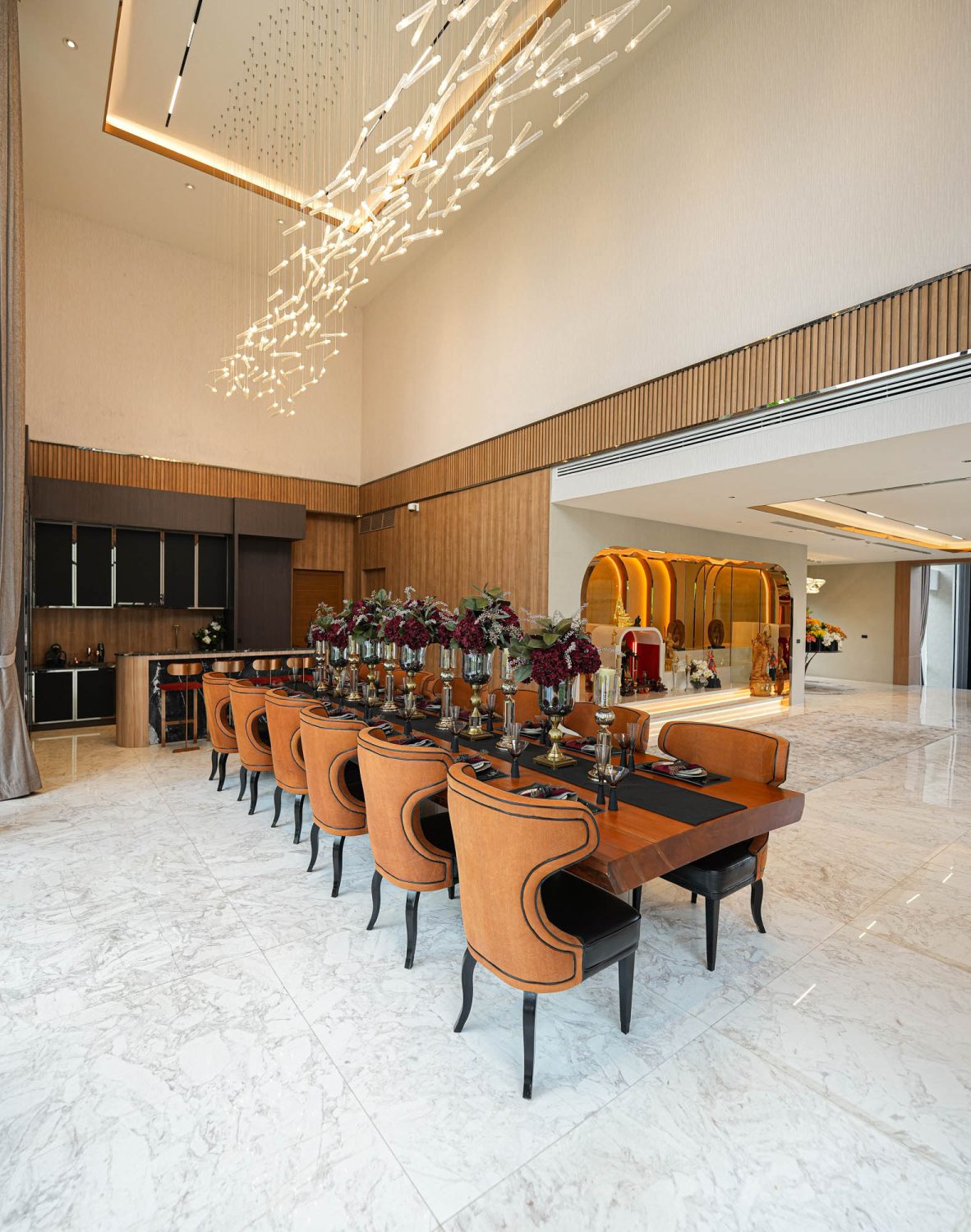 A bespoke solid marble frame in Bianco Sivec was crafted for the Praying Altar, adding a touch of elegance and uniqueness to the space.