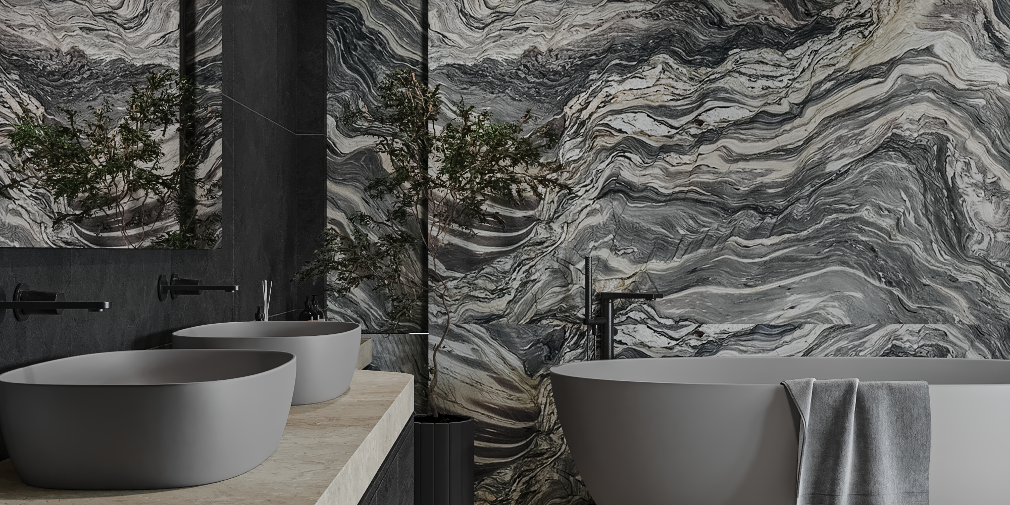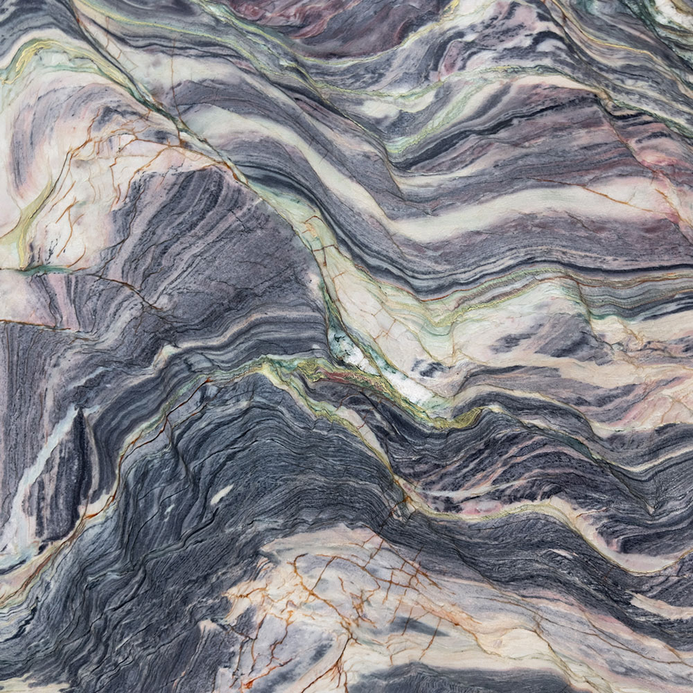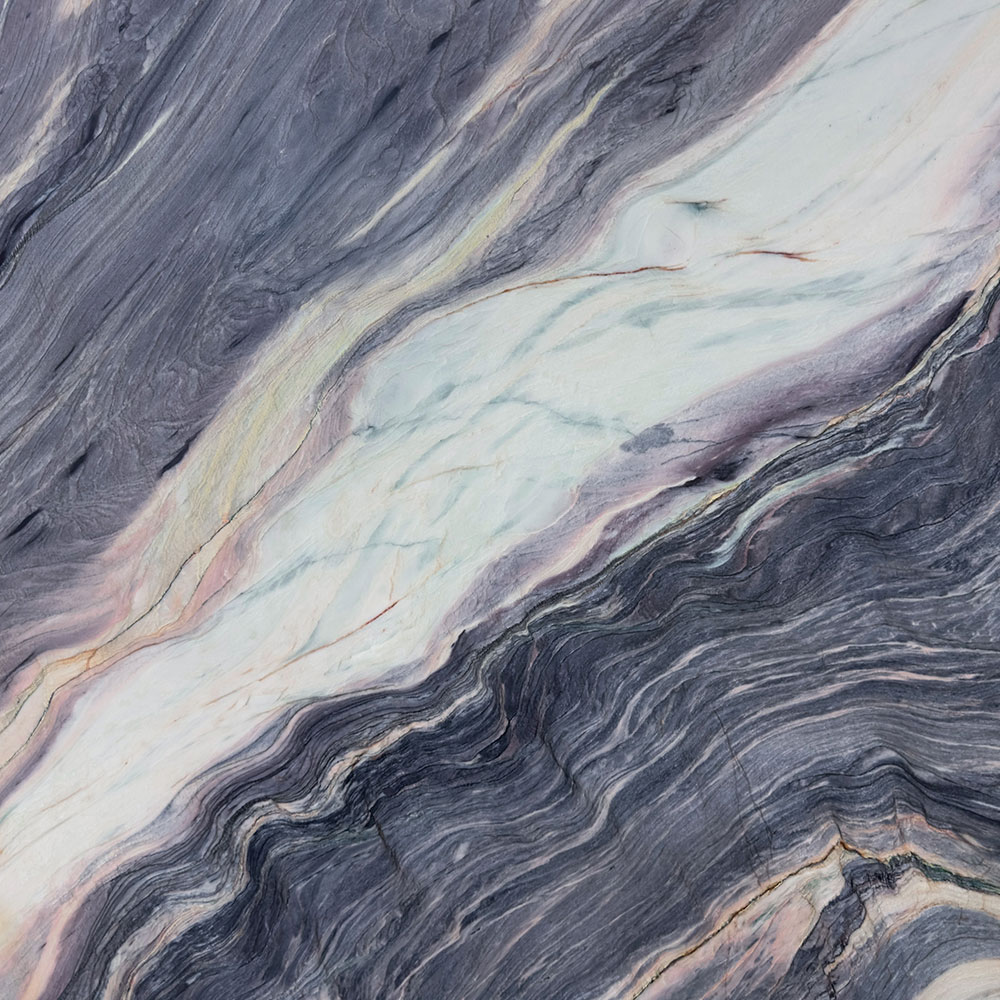 ดื่มด่ำไปกับเสน่ห์อันงดงามของเอ็กโพชั่น บลู (Explosion Blue) จากอันมาร์ ซึ่งมีโทนสีม่วงเข้มราวยามราตรี ตัดกับประกายสีทองอ่อนและเฉดสีเขียวละมุนอย่างลงตัว ควอตไซต์อันงดงามนี้สะท้อนถึงเสน่ห์อันน่าหลงใหลของเกลียวคลื่นใต้แสงจันทร์ ด้วยสีสันที่พลิ้วไหวและลวดลายคล้ายเกลียวคลื่น ชวนให้นึกถึงความงามอันเงียบสงบของท้องทะเลยามค่ำคืน การผสมผสานอันเป็นเอกลักษณ์ของเนื้อหินและเฉดสีของมันช่วยสร้างความรู้สึกพลิ้วไหว เติมเต็มทุกพื้นที่ด้วยบรรยากาศที่เต็มไปด้วยความมีชีวิตชีวาและความหรูหรา